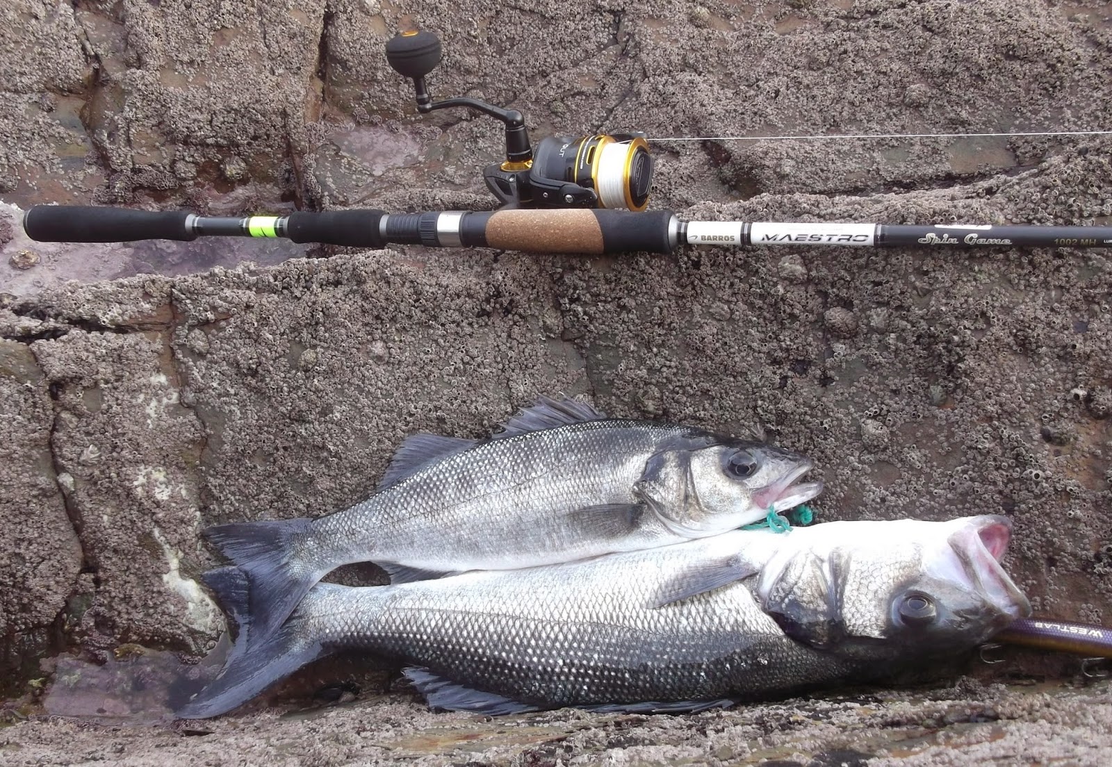 Após uma investida na companhia do Rodrigo Zacarias onde ele safou a grade com um bom peixe e eu ter ficado em branco e apesar  das condições se apresentarem longe das ideais para a pesca de spinning,  para o dia  hoje ainda serem piores a previsões o que se veio a confirmar, mas como sou teimoso e em casa não apanho de certeza, fiz mais uma investida, com muita calma e perseverança pois o Oceano encontrava-se muito alterado com muita força de fundo e uma cadencia de ondulação com um período de vaga muito elevado, lá consegui safar a grade com labrax já engraçado.